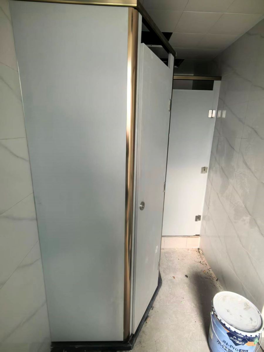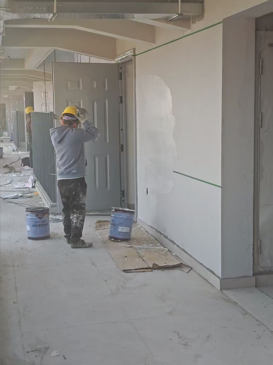 3.10号宿舍楼:卫生间隔断完成至七层;阳台内侧饰面造型完成50%。