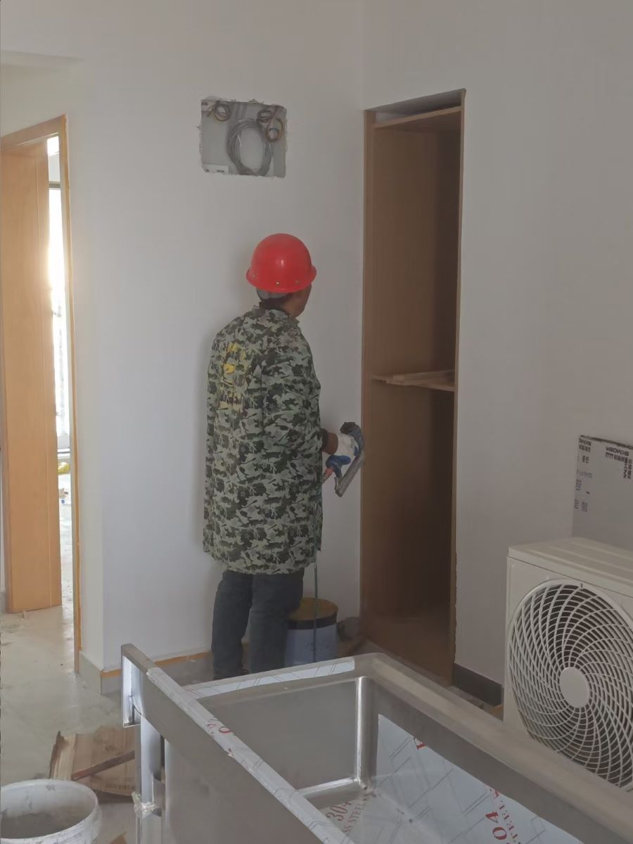 4.11号宿舍楼:柜子安装累计完成40%;开关插座面板全部安装完成;阳台内侧饰面造型完成。