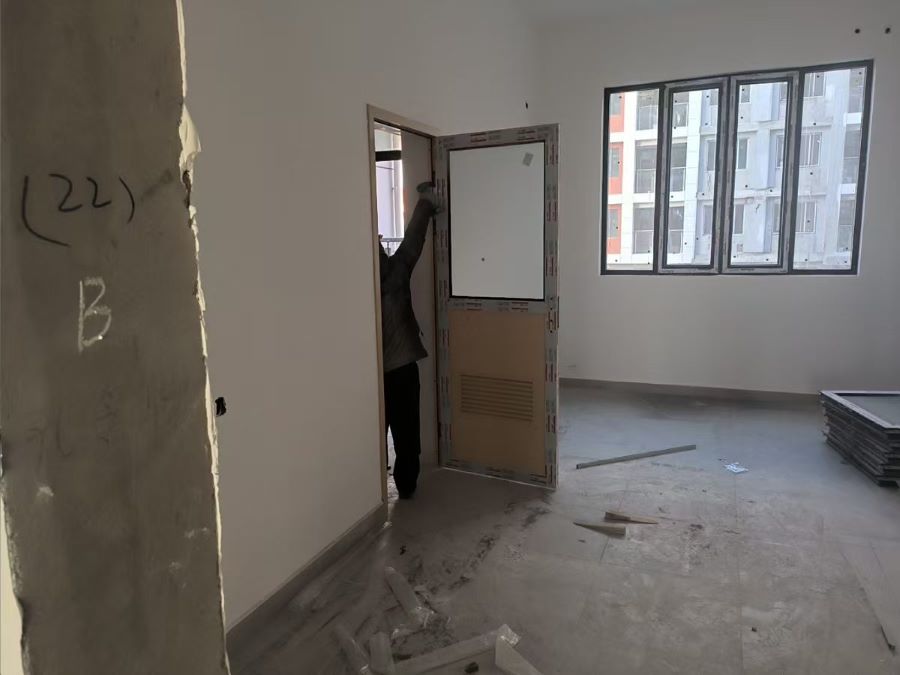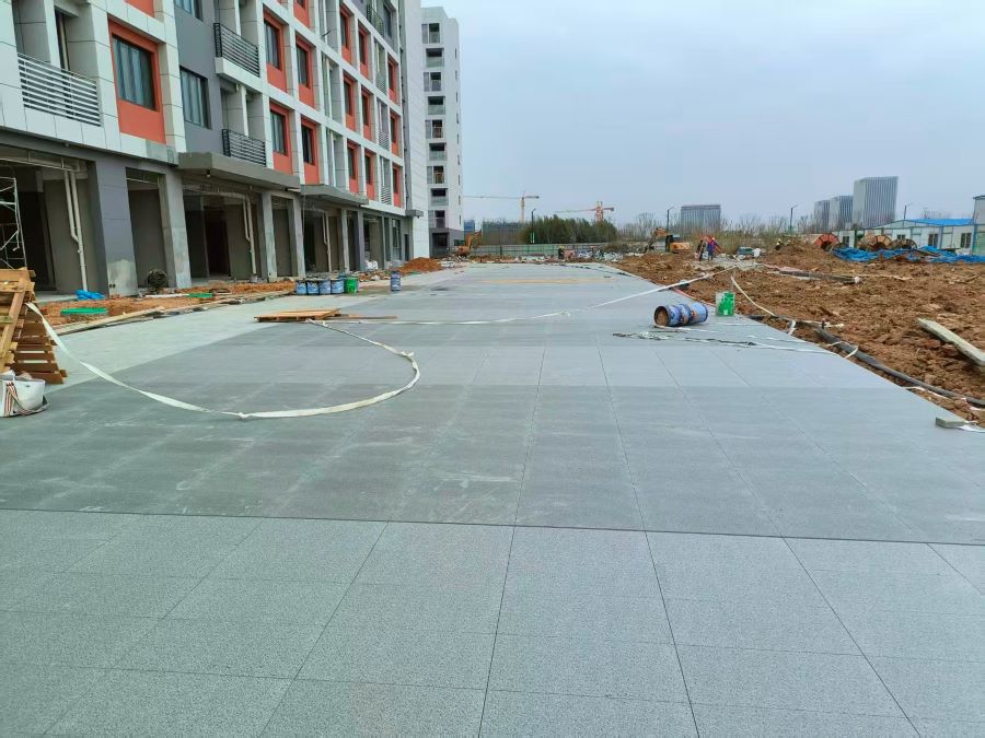 5.12号宿舍楼:木门安装累计完成10%;阳台内侧饰面造型完成;东侧、南侧室外铺砖累计完成80%。