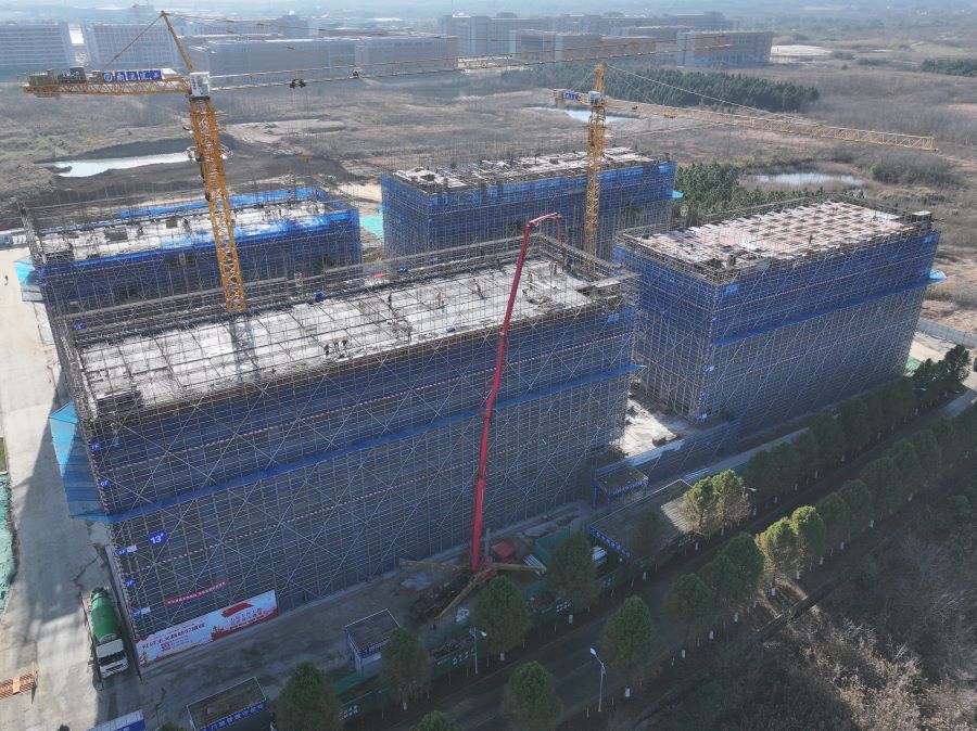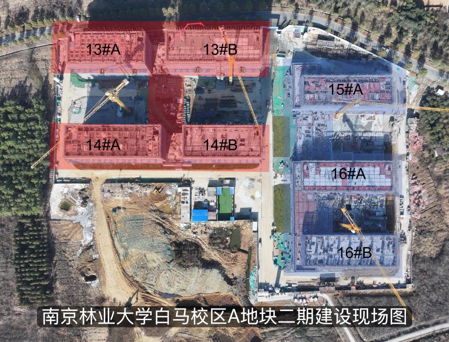 南京林业大学白马校区A地块二期建设工程按计划推进,全力推进13#、14#宿舍楼主体结构施工。