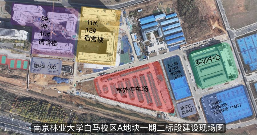 南京林业大学白马校区A地块一期二标段建设工程全力推进。