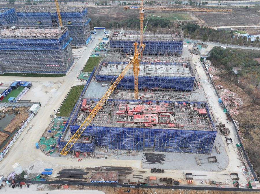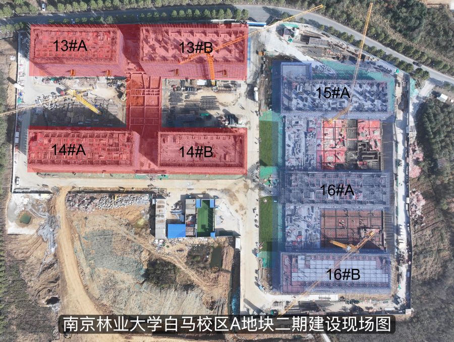 南京林业大学白马校区A地块二期建设工程按计划推进,全力推进13#、14#宿舍楼主体结构施工。