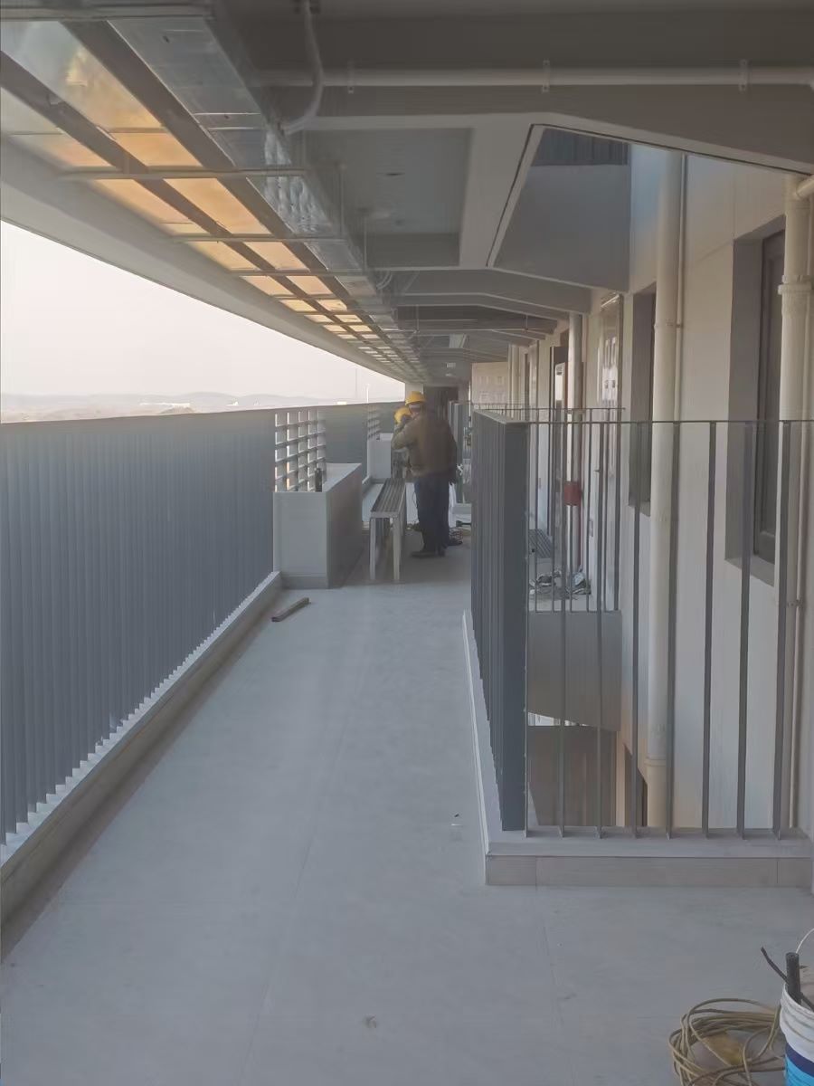 2.9号宿舍楼:木门门锁安装完成;连廊完成30%。