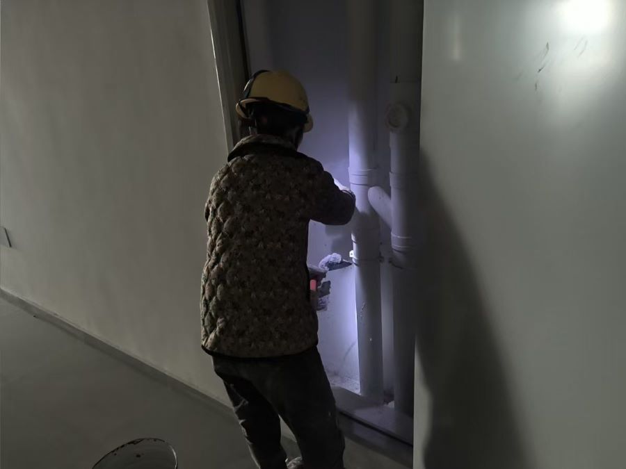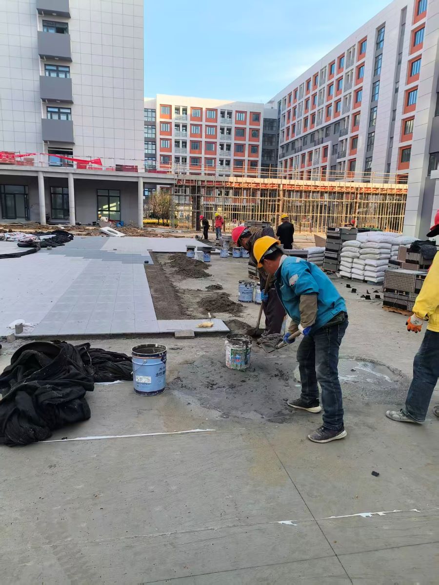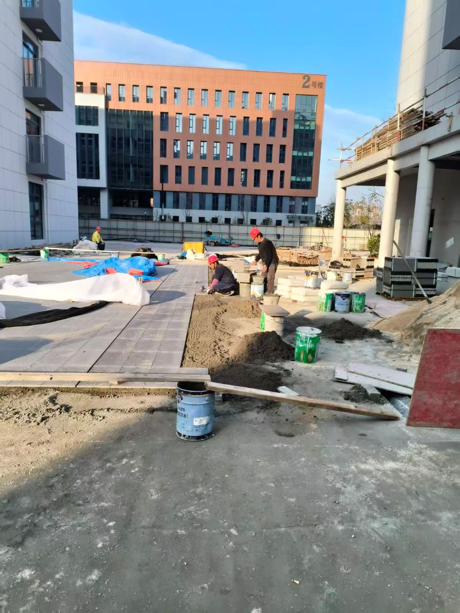 5.12号宿舍楼:木门门锁安装至七层;中庭铺砖完成。