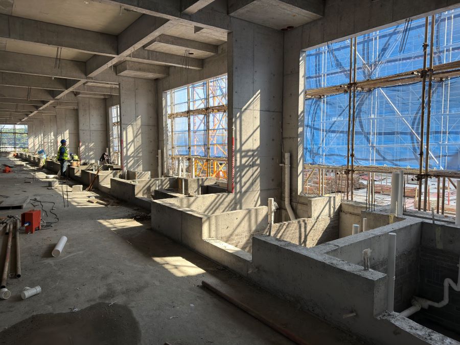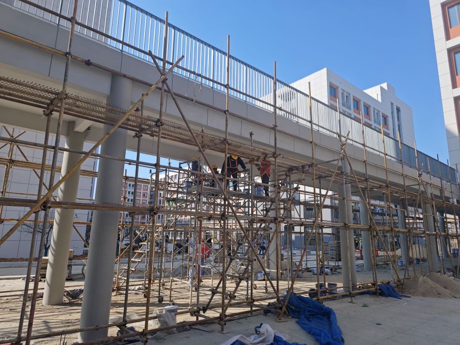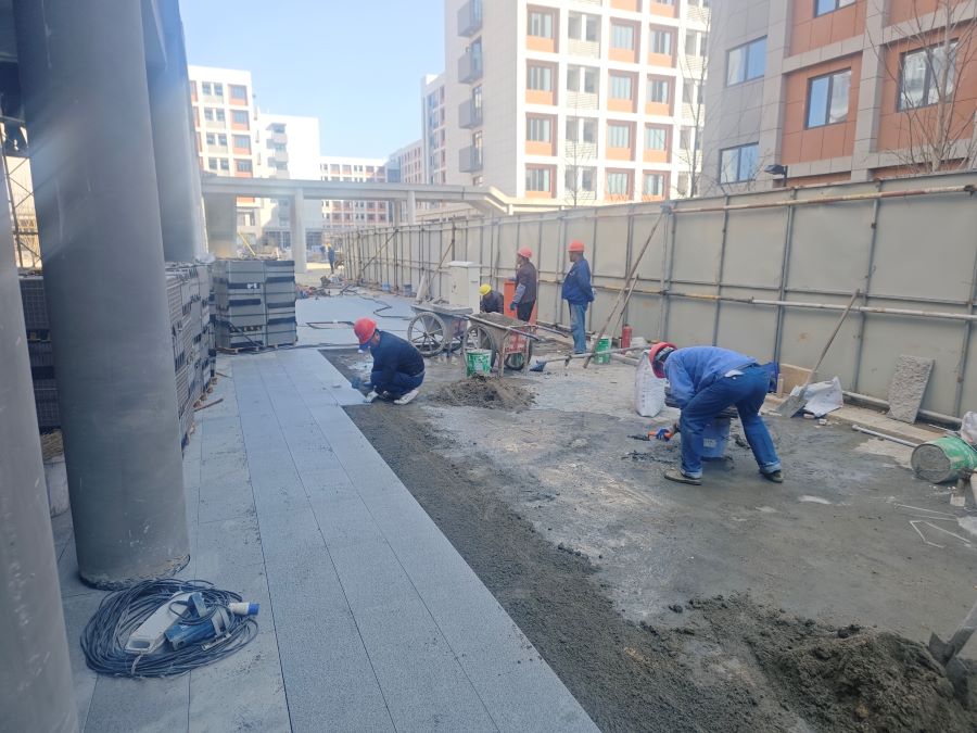 2.实务施工:连廊粉刷全部完成;连廊饰面,11号楼累计完成90%,12号楼累计完成60%,9号楼完成15%;广场铺贴收尾,8号楼西侧广场累计完成90%,9、10号楼连廊区域完成20%。